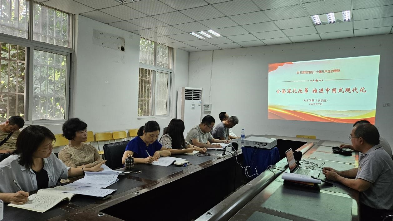 学习好贯彻好党的二十届三中全会精神是当前和今后一个时期全党全国的一项重大政治任务。2024年9月29日,生化学院(农学院)教工党支部开展了深入学习二十届三中全会精神系列学习活动。