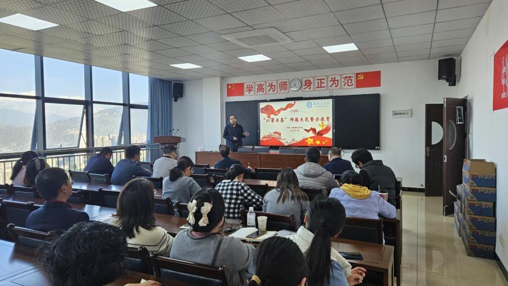 11月21日(星期四)下午16:00,为深入学习贯彻党的二十届三中全会和全国教育大会精神,进一步贯彻落实师德师风是评价教师队伍素质的第一标准,强化教育家精神引领,生化学院(农学院)开展了 “以案为鉴”师德失范警示教育活动。