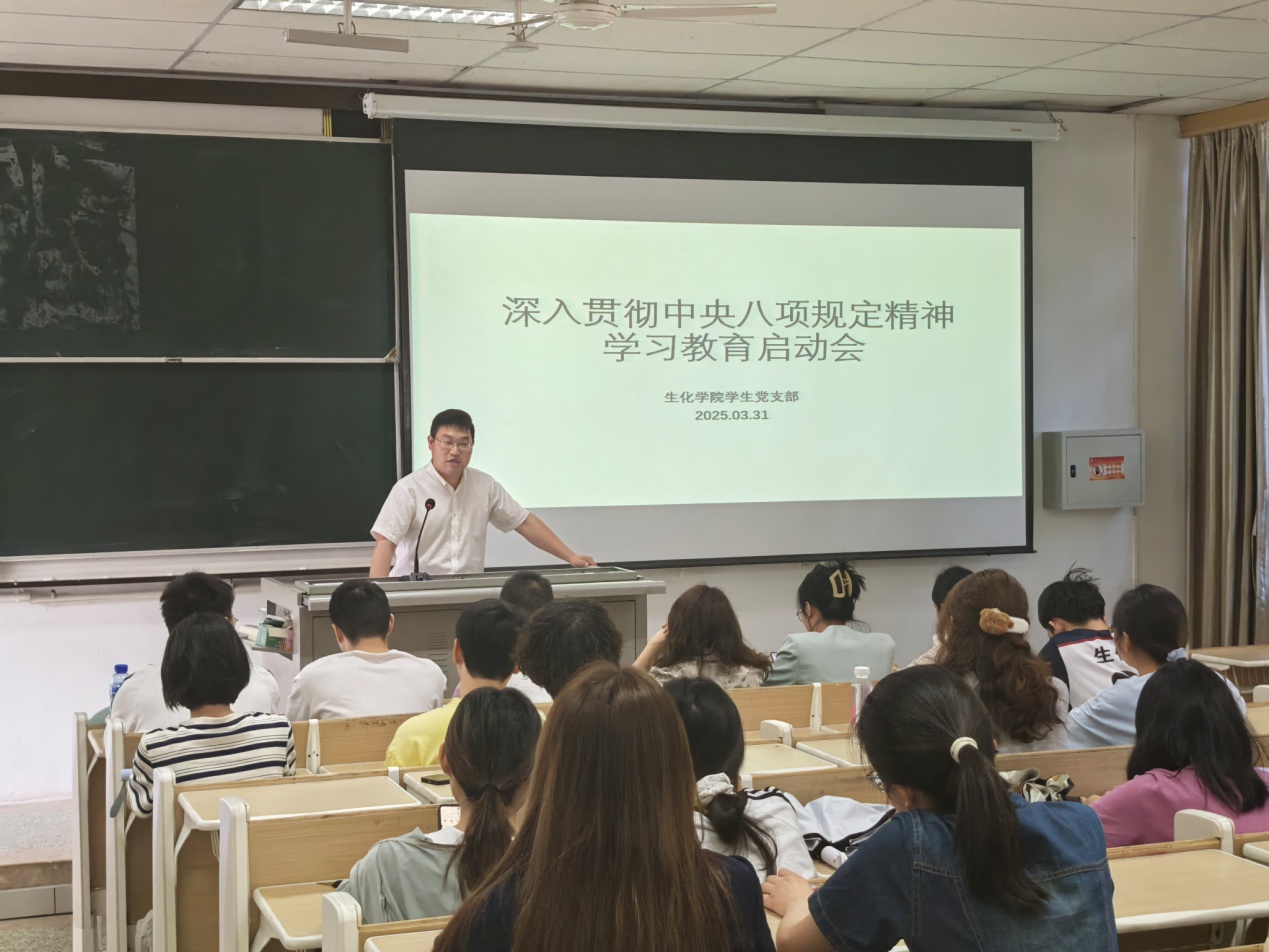 2025年3月31日中午,生化学院员工第一党支部与第二党支部在第一教学楼1-102教室,联合召开全体党员大会,正式启动深入贯彻中央八项规定精神学习教育活动。此次会议由员工第一党支部书记巩元勇主持,旨在进一步强化员工党员的纪律意识,推动全面从严治党向基层延伸。