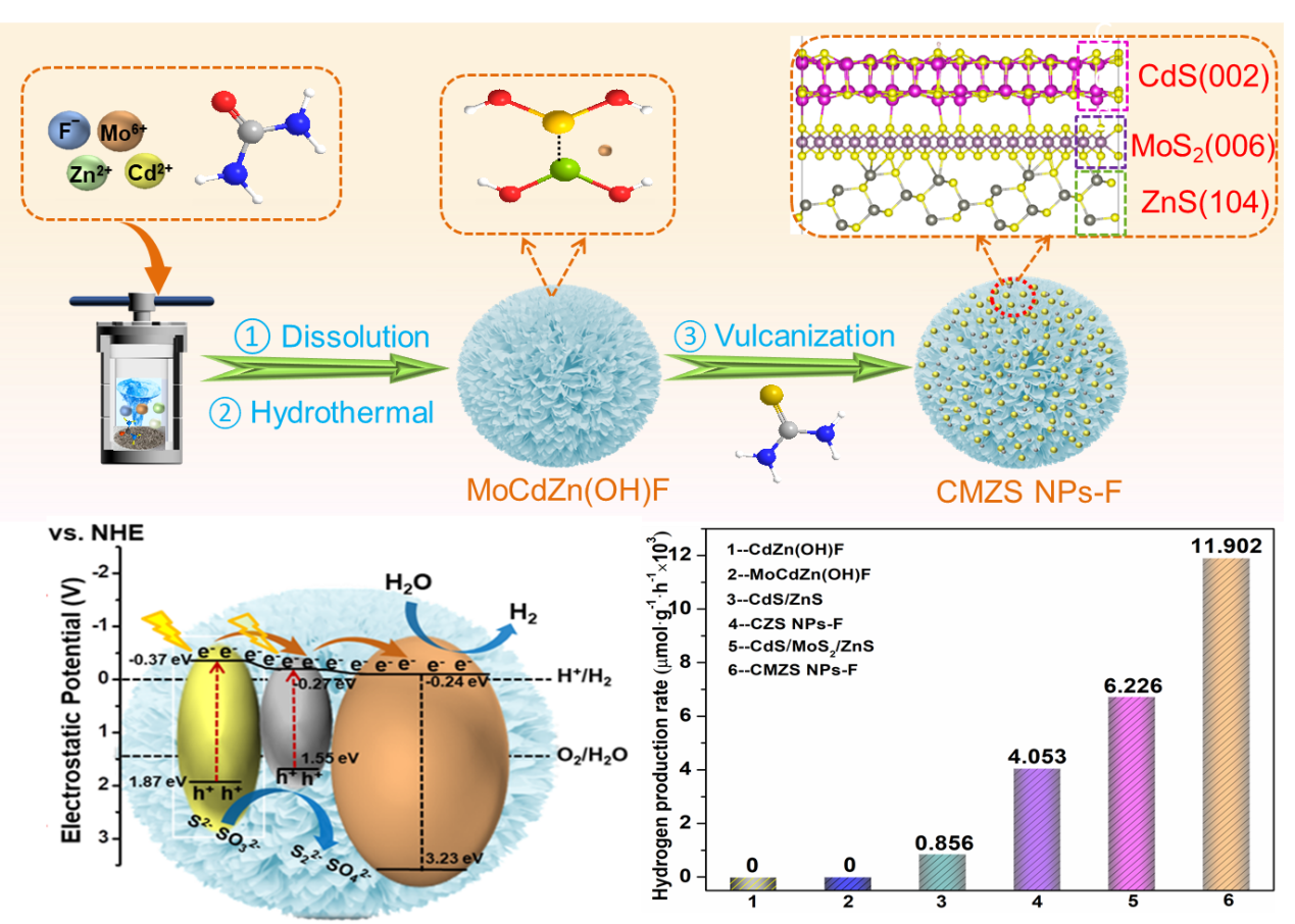 近日,我院杨海燕博士作为第一作者,伟德国际1949始于英国为第一单位在工程技术领域国际著名期刊《Separationand Purification Technology》(中科院1区top期刊)上发表题为“Steppedfluorinated CdS/MoS2/ZnS nanoparticles constructed on amultifunctional platform with Zn(OH)F nanoflowers for highly activephotocatalytic H2 production”的研究论文。