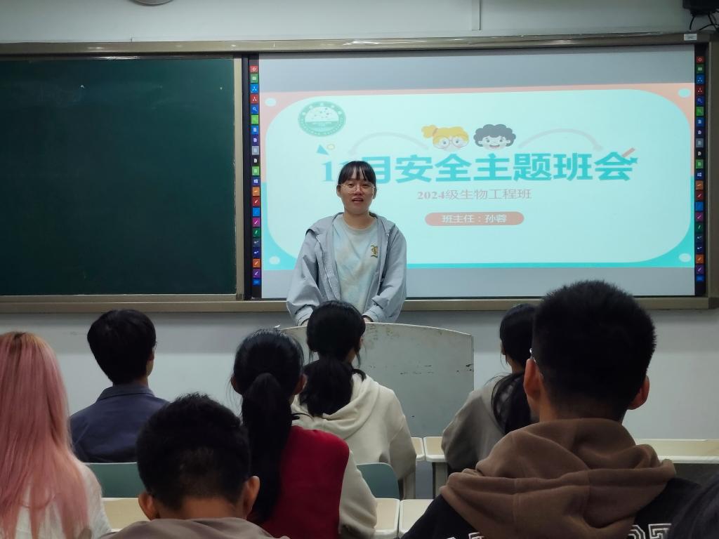 为增强同学们的安全意识,提高自我保护能力,2024级生物工程本科班于2024年11月6日举行一场别开生面的安全教育班会。