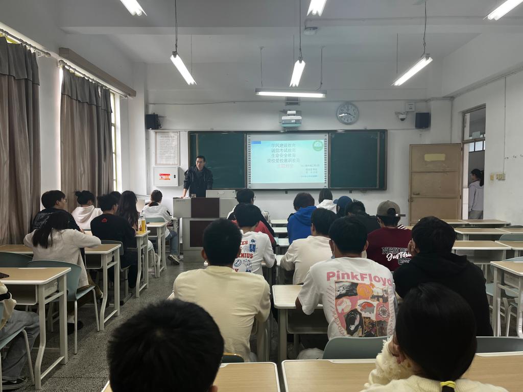 2024年11月4日, 2022级环境工程1班于一教1 -412教室召开了一场意义非凡的主题班会,班主任亲自主持,围绕学风建设、诚信考试和生命安全三大主题展开讲解。