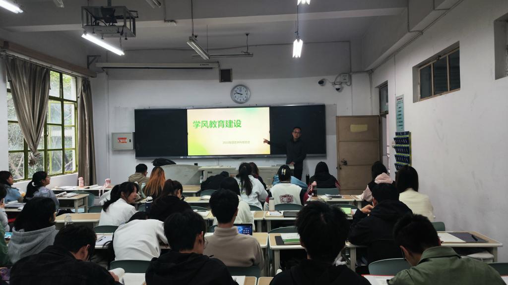 2024年11月5日早上,为了提高员工综合素质,促进员工全面发展,塑造良好的学术氛围,激发员工的学习热情和探究精神,传承优秀学术传统。22级园艺本科班全体同学于伟德国际1949始于英国第一教学楼210室开展了“学风教育建设”的班会活动,班会主持人龙成老师。