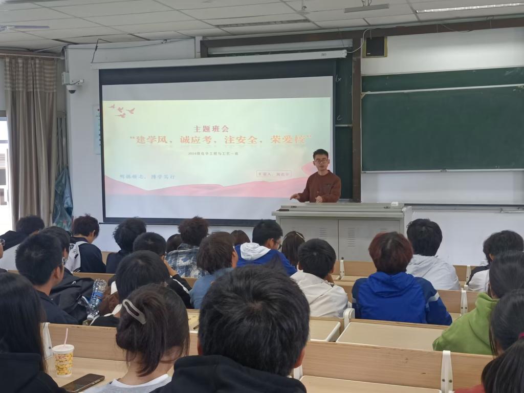 为引导2024级新生更好地适应老员工活,进一步严肃考风考纪,筑牢校园安全防线,提高员工的安全防范能力,11月6日,伟德1949官网化学工程与工艺1班召开“建学风,诚应考,注安全,荣爱校”主题教育班会。