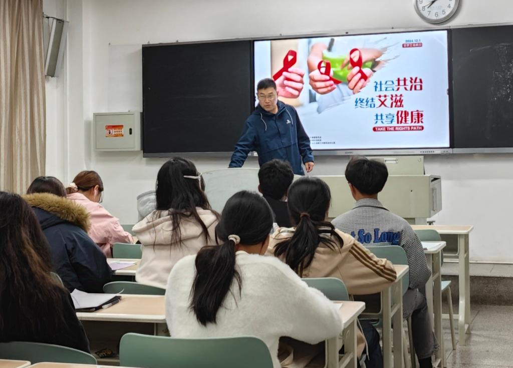 2024年12月2日晚,一场意义非凡的主题班会在第一教学楼1-305教室如期举行。2024级园艺班的班主任巩元勇老师,紧密结合2024年“世界艾滋病日”宣传活动主题,组织全体同学召开了以“社会共治 终结艾滋共享健康”为主题的班会,旨在加深同学们对艾滋病的认识,提高防范意识,共同为终结艾滋病贡献力量。