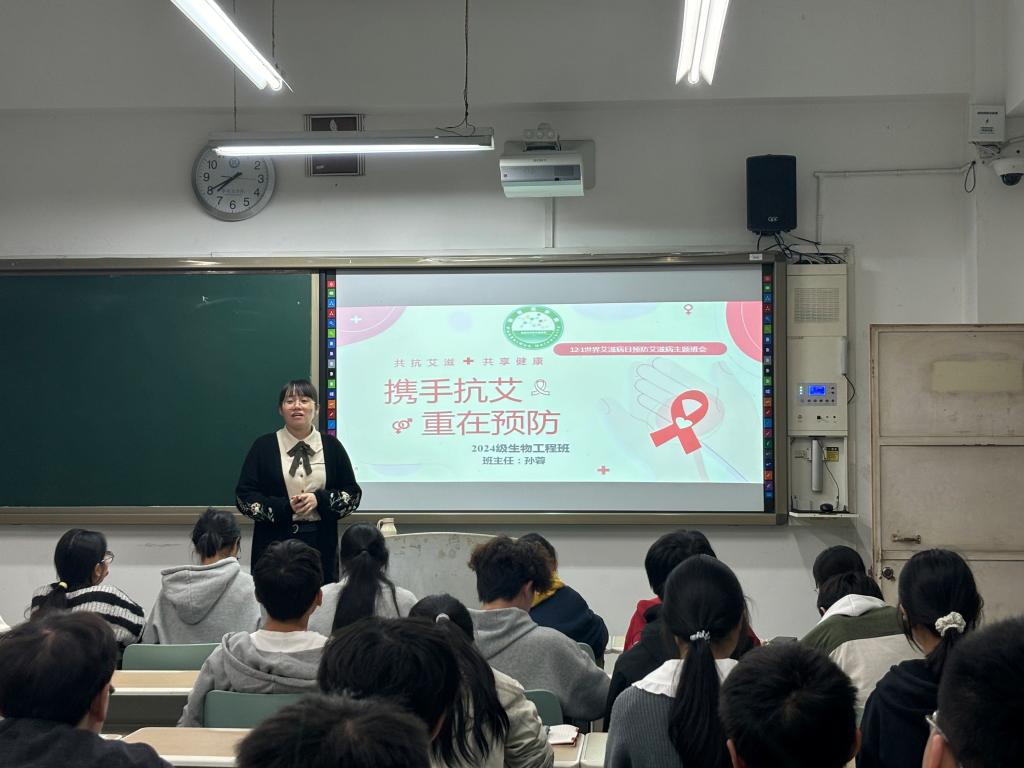 12月3日,为了进一步推动艾滋病防治工作,树立正确健康生活理念,增强自我保护意识,2024级生物工程本科班全体同学在班主任孙蓉老师的带领下在第一教学楼1-502开展了“携手抗艾,重在预防”主题教育活动。