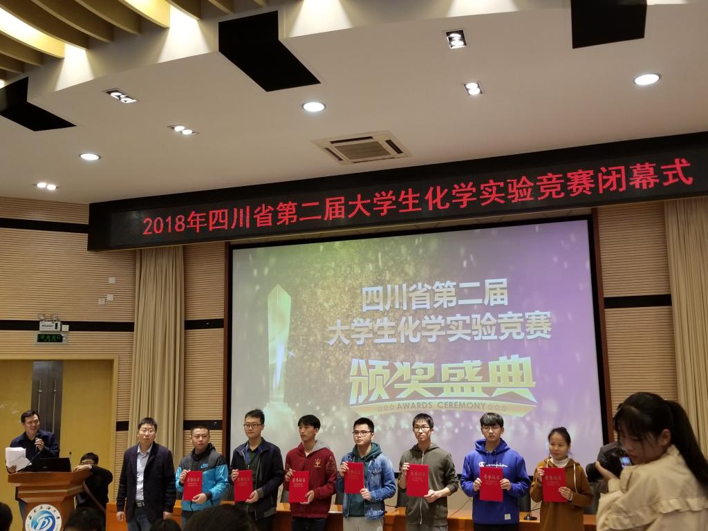 2018 年四川省“第二届”老员工化学实验竞赛传来喜报:公司宋浪、龙琴、谭海龙、陈星亮和蒋卓成同学组成的“3+2”参赛队伍(指导老师:袁玎和毛雪华)荣获三等奖。