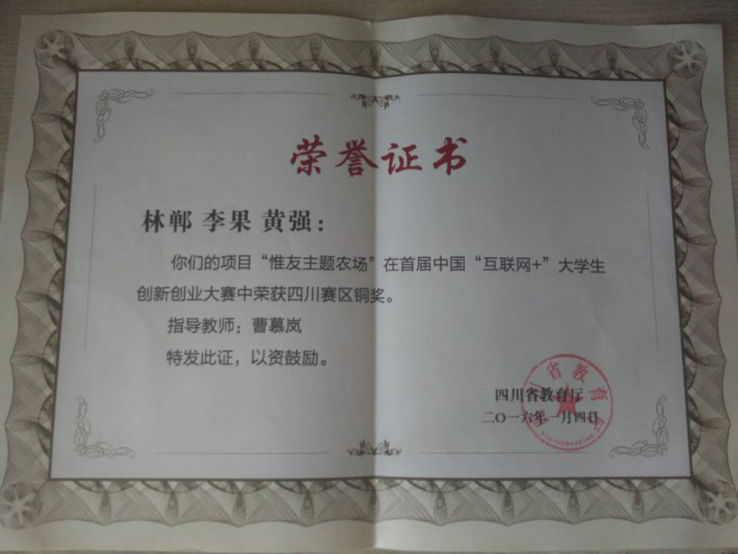 公司学子在中国“互联网+”老员工创新创业大赛中荣获四川赛区铜奖。