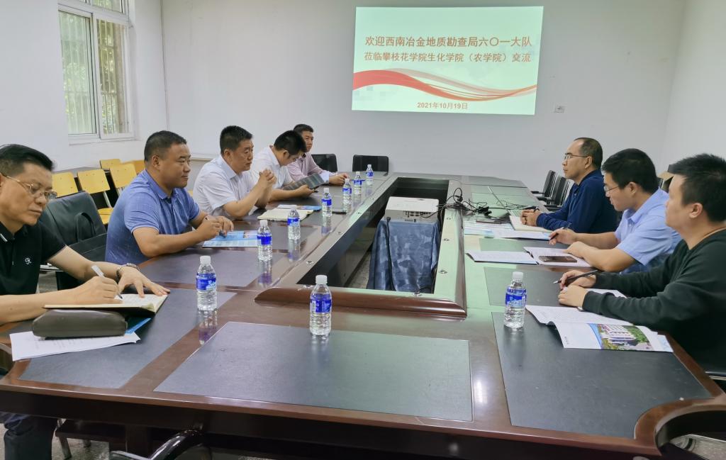 为进一步加强发展产教融合工作,促进毕业生就业,10月19日,生化学院(农学院)与四川省冶金地质勘查局六〇一大队在博学楼二楼会议室举行交流洽谈会,就互相关心的毕业生就业、人才培养、科研合作及硕士点建设等进行了深入交流。四川省冶金地质勘查局六〇一大队党委书记马建忠、副队长秦术凯、生化公司党委负责人出席交流会。