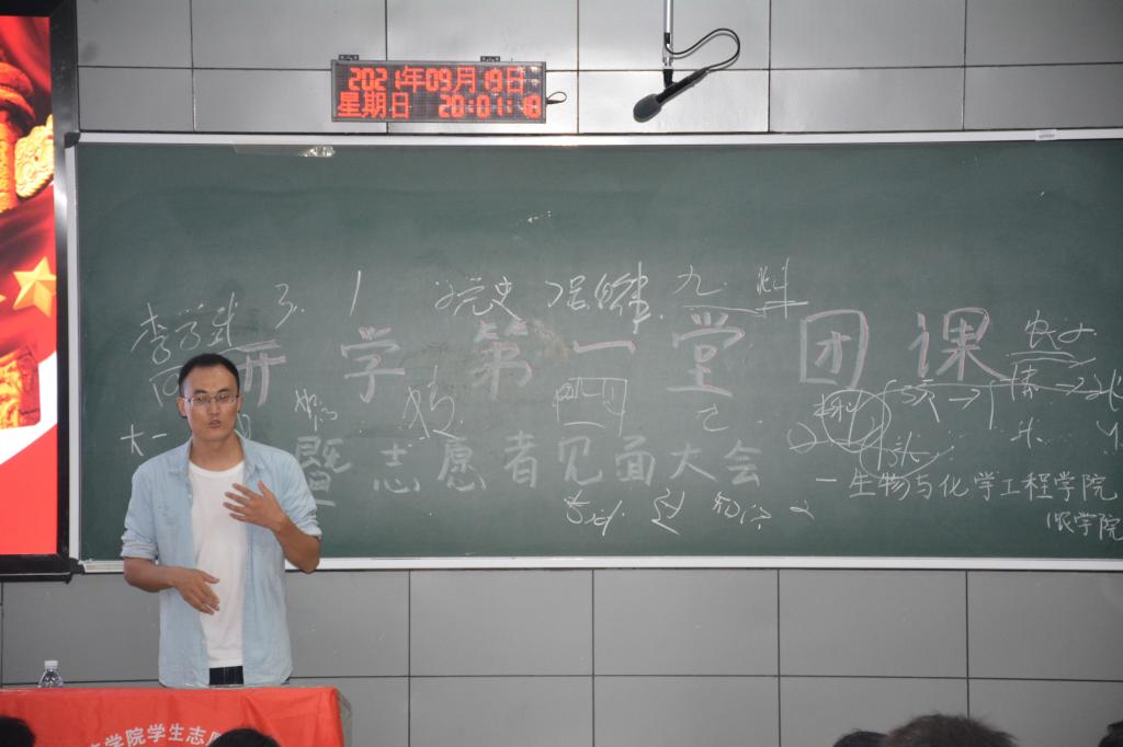 2021年9月19日,公司于第一教学楼1—1教室举行了“强国有我,请党放心”2021秋季开学第一堂团课活动,公司分团委书记李学武,团委员工会主席、干部,社管委干部和生化志愿服务站干部以及全体2021级新生参加活动。
