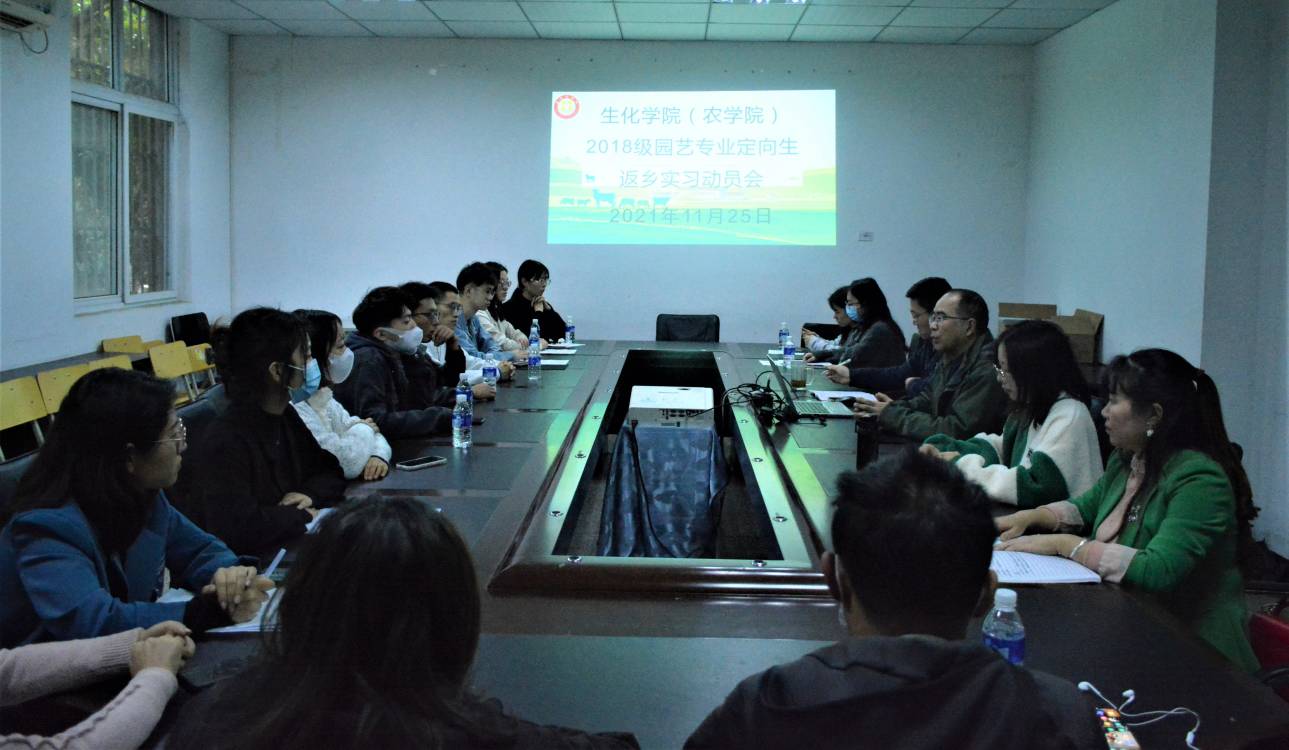 11月25日下午,公司于博学楼二楼会议室组织开展了2018级园艺专业定向生返乡实习动员会。公司党委书记刘东康、员工科科长巩元勇、18级辅导员杨显玲、园艺专业方向负责人赵丽华以及18级园艺专项全体同学参加了此次会议。