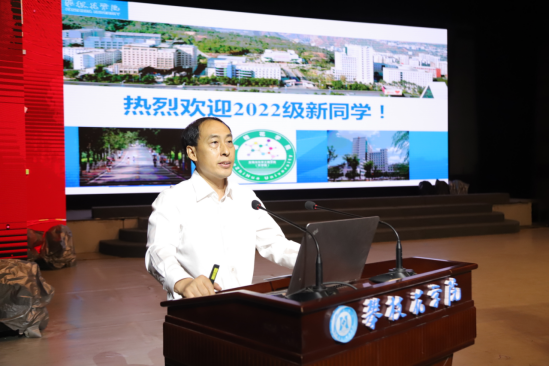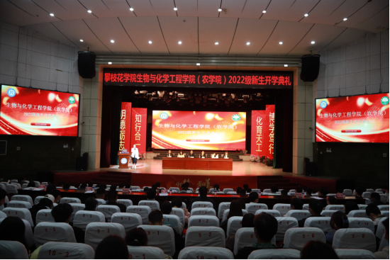 经理朱学军教授以“知行合一,奋进有为,谱写你人生壮美诗篇”为主题,热情洋溢地为新生介绍攀枝花发展历史、学校办学理念,详细介绍了生化学院和农学院所含专业,就5个本科专业化学工程与工艺、生物工程、环境工程、应用化学、园艺应用对社会发展贡献做了详细解说,让同学们了解专业前景,激发学习兴趣,树立专业自信。