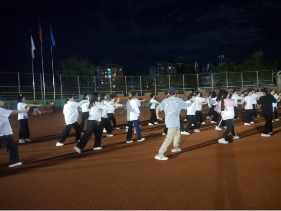 班上的同学都积极参加,认真学习着各项基本动作。这次活动不仅可以锻炼同学们的身体素质,还可以增强班级的凝聚力。这对同学们来说是很有意义的一项活动。