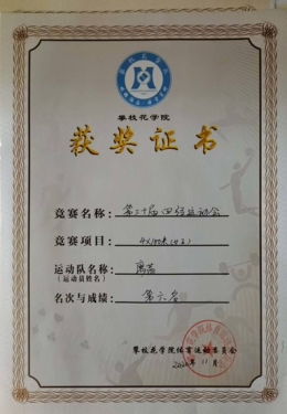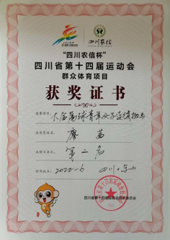 2022年,四川省第十四届运动会群众体育项目金属球青年女子连续抛击第二名;