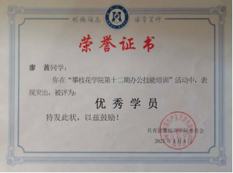 这些荣誉来自2020级环境工程一班的员工——廖茜