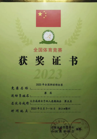 2023年,全国掷球锦标赛女子双人大金属连续抛击赛第五名;