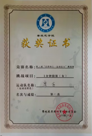 2023年第三届“自律向上,运动达人”挑战赛1分钟投篮(女)第一名