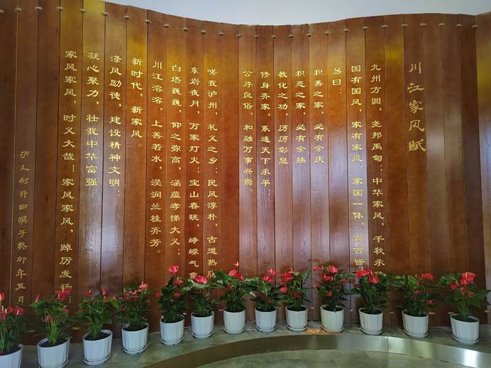 据悉,川江家风馆于2016年10月初建,它以“水”的精神为魂、“家”的理念布局、现以“川江”命名,既凸显泸州地处云贵川渝结合部的独特区位优势,又体现“海纳百川”“上善若水”之意,彰显中华家风的源远流长、厚实博大。