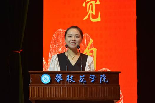 优秀员工代表、2023年学院最美基层员工陆佳华感慨过去在攀大学习的种种美好回忆,从刚进入大学的对未来的憧憬和不安开始为新生们讲述了自己在面对困难和挫折时如何面对并解决,鼓励大家直面困难,努力克服困难。面对困难和挫折时如何面对并解决,鼓励大家直面困难,努力克服困难。