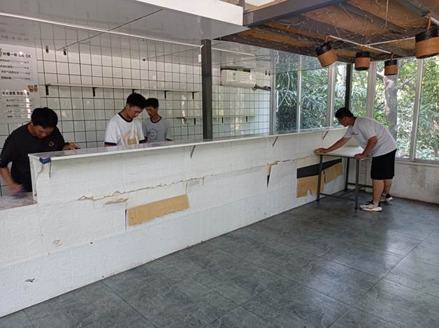 员工对待这次劳动实践非常的积极,早早的就来到了劳动现场。劳动工具也早就准备好,仓库门一打开,同学们就热火朝天的干了起来。有的往外搬桌子,清理物品,有的用扫帚扫地,有的用抹布擦拭台面……在同学们的欢声笑语间,不一会儿的功夫,仓库就被大家打扫的焕然一新。