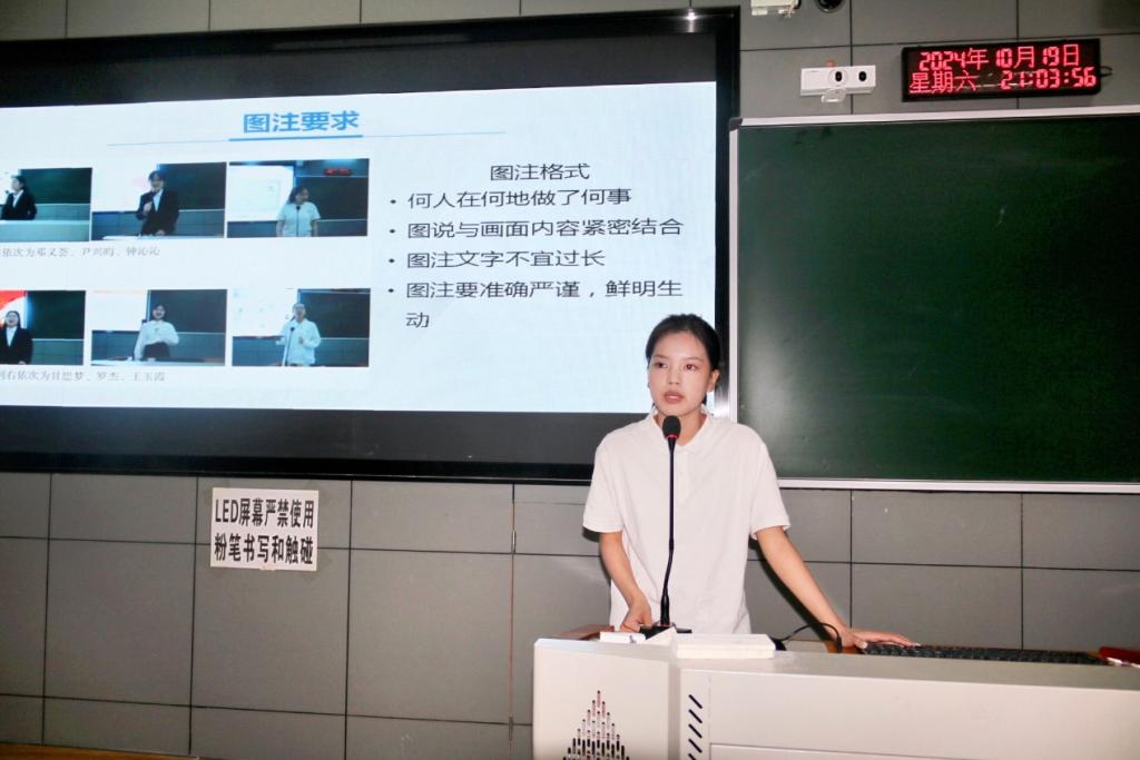 工作站站长李倩倩针对宣传事务方面做一些讲解,详细的介绍了新闻写作的格式以及注意事项、要求等,并分享了各种拍摄技巧,最后提出了图片存档及图注的要求,让干事们在宣传事务上有了一定了解.