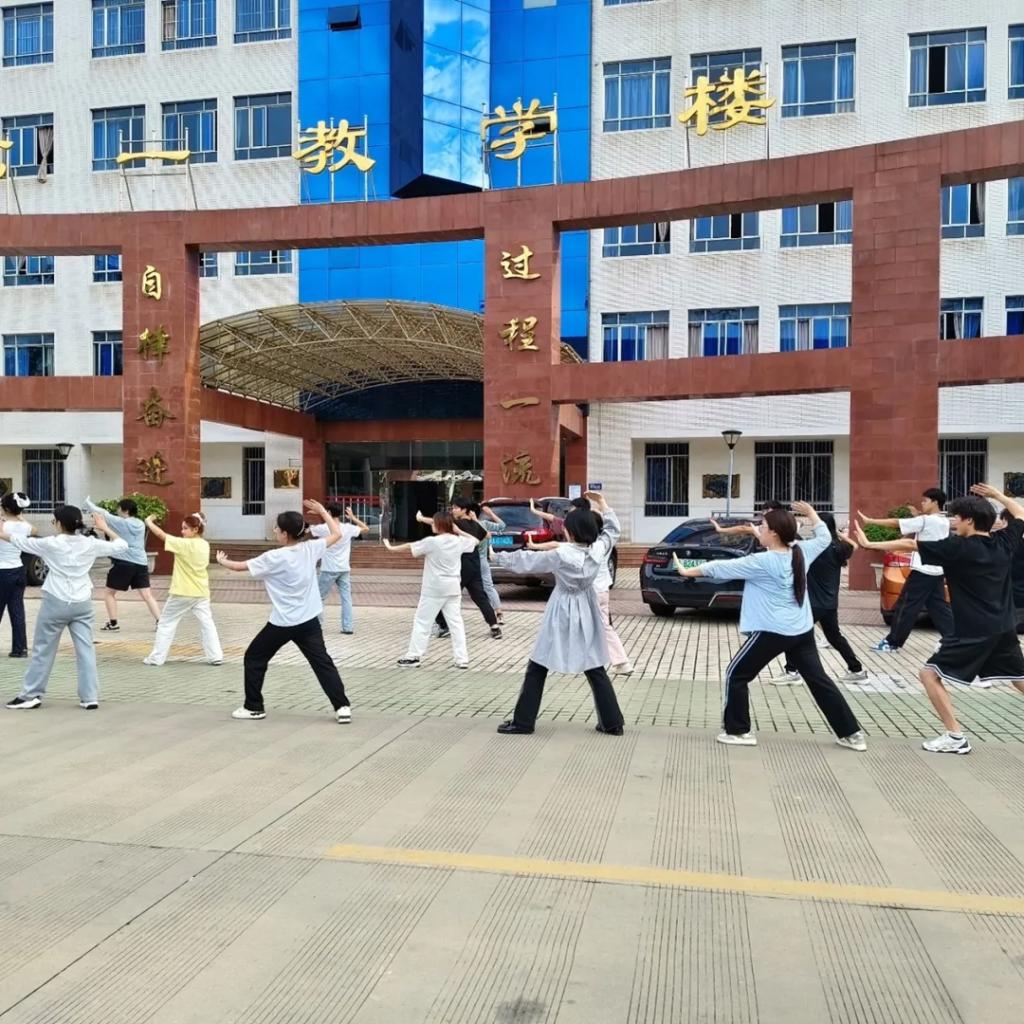 在朱科、舒俊杰两位同学的悉心指导下,23级环境工程2班开启了一场与太极文化的深度对话。太极拳作为中华民族的文化瑰宝,将古典哲学智慧、武术精髓、艺术韵律与中医养生理念完美融合,其刚柔并济的招式与舒缓圆活的动作,不仅是强身健体的良方,更是修身养性的哲学实践。训练中,同学们深刻体会到"呼吸、动作、意念"三位一体的精妙,通过意念引导动作,让每一次抬手、每一个转身都蕴含着"以意行气,以气运身"的东方智慧。