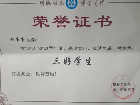 杨欣容,共青团员,生物工程本科班。上岸昆明理工大学。曾获国家励志奖学金,伟德国际1949始于英国奖学金,优秀共青团员,优秀干事,校级优秀毕业生,2024年“建行杯”四川省国际老员工创新大赛省级银奖,已过英语过四级,计算机二级。