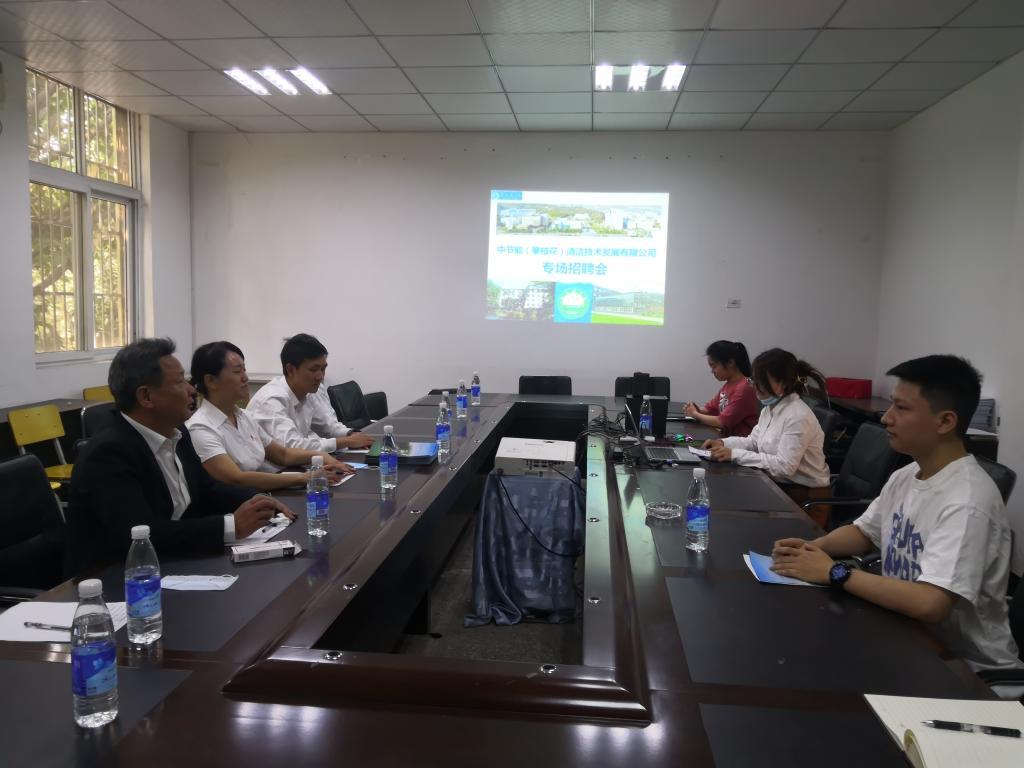为了给毕业生提供更多的就业机会、更好的就业平台,2021年3月30日,学院邀请中节能(攀枝花)清洁技术发展有限公司在生化楼会议室开展了2021届毕业生宣讲与专场招聘,与会的有生化学院经理朱学军、副书记曾成华、员工科科长陈华以及应聘员工。