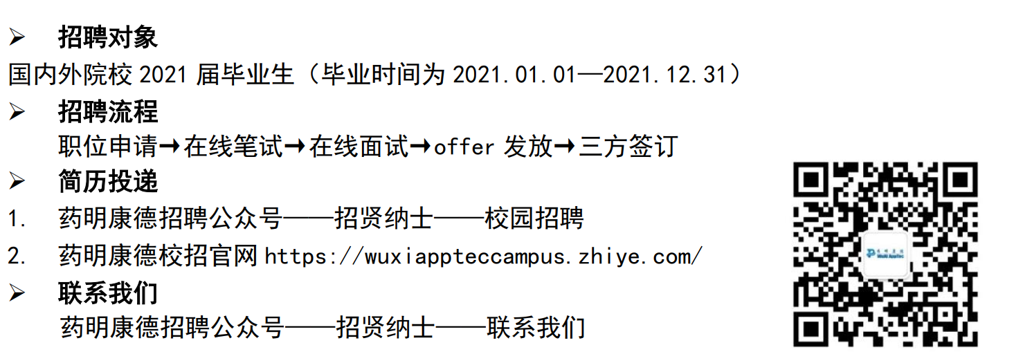 药明康德(股票代码: 603259.SH/2359.HK)为全球生物医药行业提供全方位、一体化的新药研发和生产服务。通过赋能全球制药、生物科技和医疗器械公司,药明康德致力于推动新药研发进程,为患者带来突破性的治疗方案。本着以研究为首任,以客户为中心的宗旨,药明康德通过高性价比和高效的研发服务,助力客户提升研发效率,服务范围涵盖化学药研发和生产、细胞及基因疗法研发生产、医疗器械测试等领域。目前,药明康德的赋能平台正承载着来自全球 30 多个国家的 4000 多家合作伙伴的研发创新项目,致力于将更多新药、好药带给全球病患,早日实现“让天下没有难做的药,难治的病”的愿景。