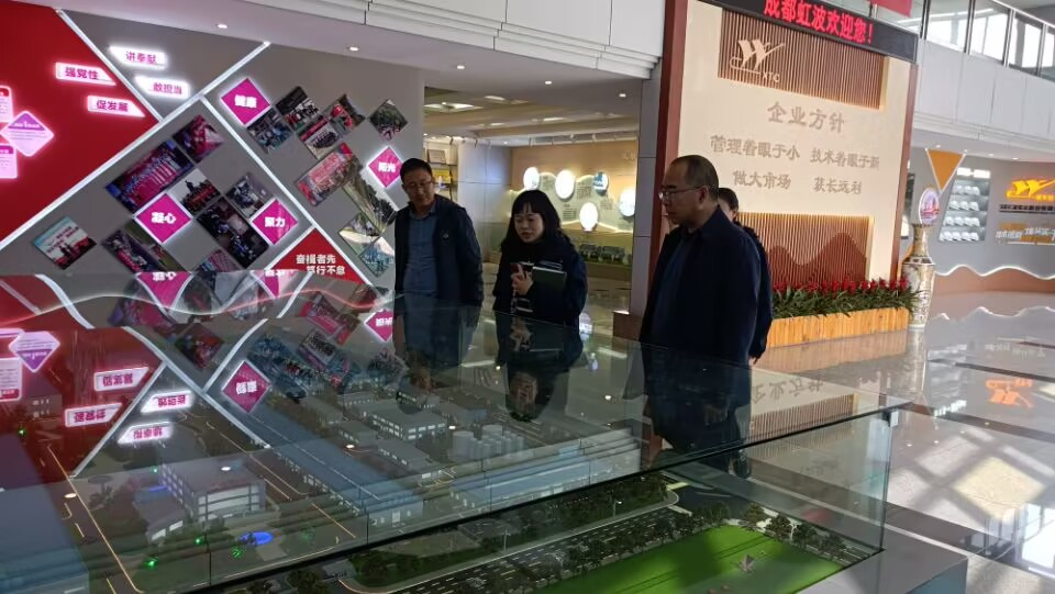刘东康书记一行在成都虹波实业股份有限公司人力资源部负责人黄超的引导下,参观了公司的厂区和生产车间。