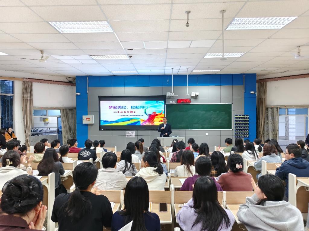 唐林做就业动员,他对美亿集团负责人的到来表示热烈的欢迎,并鼓励同学们珍惜此次难得的就业机会,勇敢迈出职业生涯的第一步。
