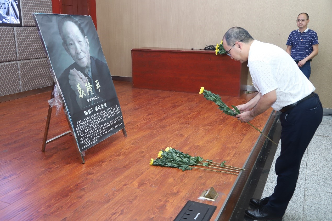 会议首先对袁隆平院士的逝世表示哀悼,师生向袁隆平院士的遗像献花致敬,并通过袁隆平院士的人生历程、青春寄语和员工感悟三个微视频展播表示对袁隆平院士的敬意和对学院员工的殷切希望。随后教师代表发言表达了,生化学院教师牢记袁老的叮嘱“做一粒好种子,培育更多的好种子”,坚持立德树人,做好科学研究、教学育人、管理育人、服务育人。参会员工也纷纷表示,要继承和发扬袁老的精神,尊重劳动、节约粮食、珍惜时间,奋发图强,做合格的自律攀大人。尤其乡村振兴计划定向生表示,向袁老学习,践行自律,服务家乡,为乡村振兴贡献自己的力量。
