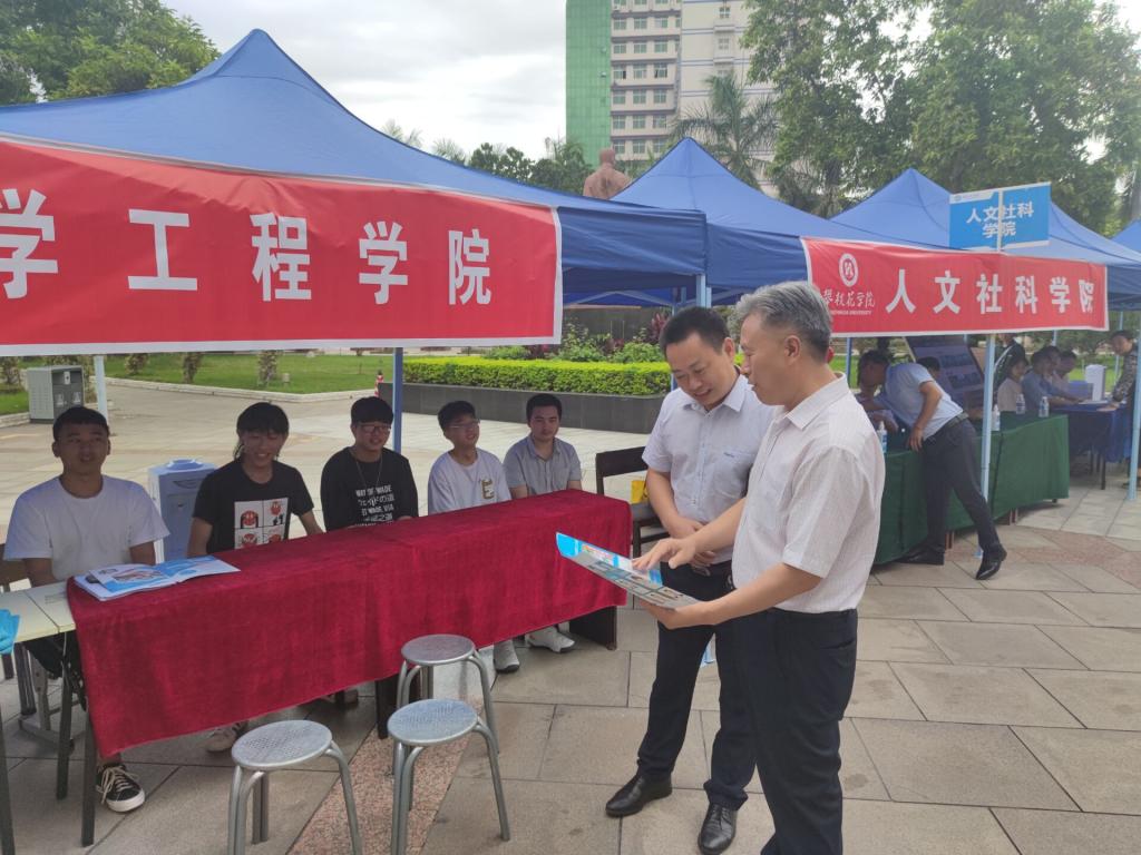 下午三点,公司根据制定出的具体方案,安排工作人员熟悉迎新具体的工作流程。在值班点,工作人员间细化分工、互相合作,使场地布置工作有条不紊的进行,搭建帐篷、布置场地、整理新生资料、悬挂学院宣传横幅、设置饮用水。此外,学院依据疫情防控工作安排,在迎新点上备足了测温枪、消毒水、口罩等物资,为迎新工作的顺利开展筑起了一道坚固的防疫保护墙。布置期间,校领导来到在现场查访公司迎新工作,询问工作人员工作流程是否清楚并叮嘱大家在值班期间做好自身防护,对不足的地方给出指导性的意见与帮助。