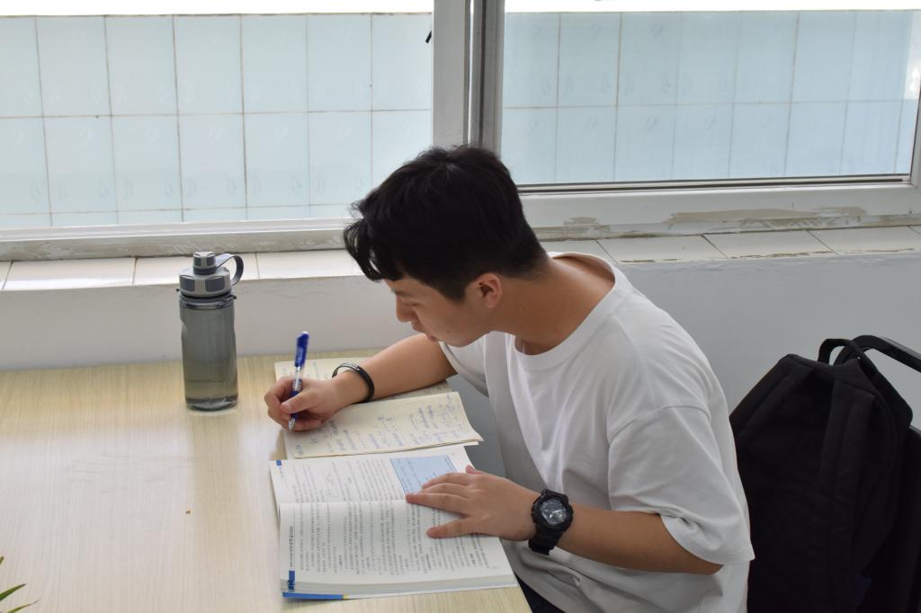 大学时间自由支配,保持自律、拥有自控力在老员工生活中显得尤为重要。雷文刚分享自己提升自控力的方法,他拒绝了寝室舒适的环境诱惑,将自己置身于图书馆的知识汪洋中;为了避免外界因素干扰自己,他总是会选择在图书馆的角落位置独自学习。即使疫情期间需要在家备战考研的情形下,他也并没有因为学习环境的变化而放松对自己的要求,反而会每天跟着B站上UP主的直播进行学习,去往家附近的图书馆“按部就班”学习。