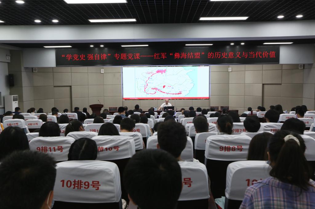 4月7日下午,省纪委监委驻伟德国际1949始于英国纪检监察组组长、公司党委副书记、纪委书记彭徐在纪检监察学院培训教室为生化学院、法学院、纪委机关全体党员,生化学院、法学院入党积极分子及员工干部代表共180人讲授了题为《红军“彝海结盟”的历史意义与当代价值》的专题党课。