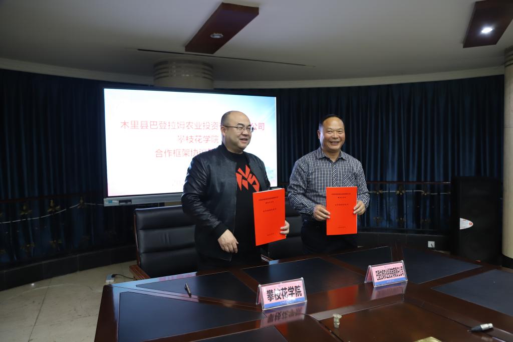 会上,彭徐和詹长友分别代表枝花学院和木里县巴登拉姆农业投资有限责任公司签订了校企合作协议。