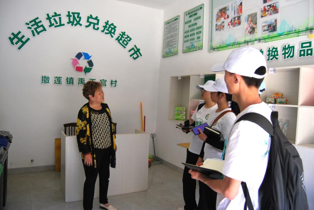 “村民将不要的废报纸、废书籍、废衣服,甚至废塑料、废电池等垃圾,按照不同的重量进行积分,积分可以兑换一些日常生活用品。现在这个‘垃圾超市’只有我们禹王宫村才有呢。”在贴着兑换细则,摆放兑换生活用品的禹王宫村垃圾超市,管理员陈阿姨热情地介绍道。