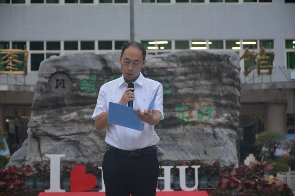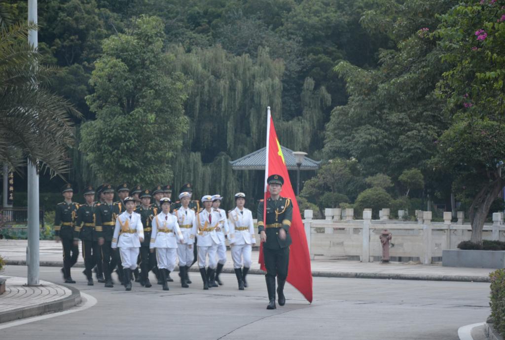 上午7时整,升国旗仪式准时开始。国旗护卫队迈着坚毅的步伐走向国旗台,护旗手奋力一挥,五星红旗在雄壮的国歌声中冉冉升起,迎风飘扬,全体师生向国旗行注目礼。