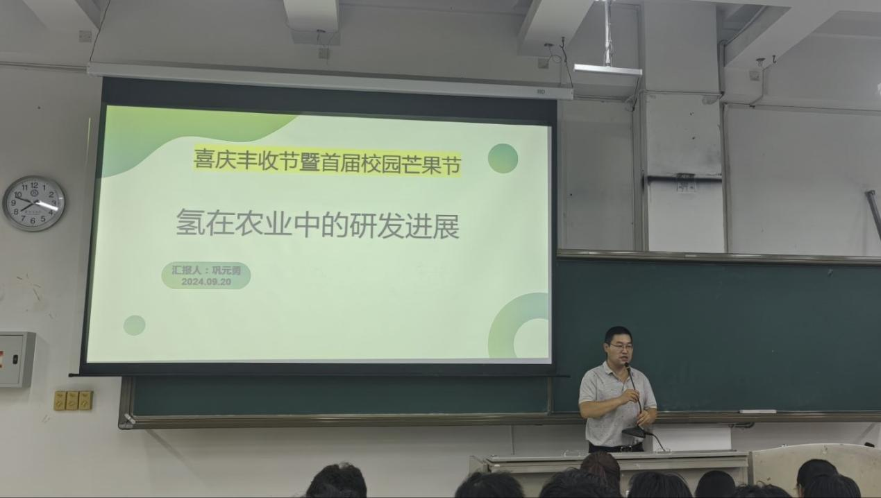 9月19日晚上,巩元勇在2-316开展了以“氢在农业中的研发进展”为主题的讲座。讲座从氢用于农业中的发展现状、氢在农业中的应用形态、氢在种植、养殖业中的研究进展、氢在农业研究的结论四个方面来讲解。着重对氢农业研究成果趋势进行了说明,研究数量逐年上。国内外研究对比、未来研究展望、研究热点变化都有效说明了氢农业显著的研究成果,让同学们明白了氢在农业上的不同凡响。