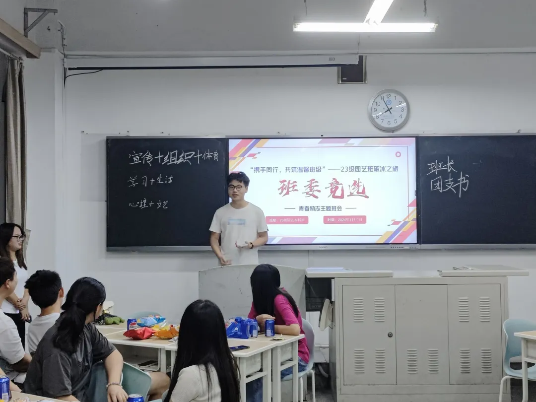 为了实现项目的预期目标,11月1日2023级园艺班在1-203组织开展了以“携手同行,共筑温馨班级”为主题的青春励志主题班会。活动分为班委竞选和破冰计划两个部分,旨在增强班级凝聚力、建设优良学风、凝练成果。