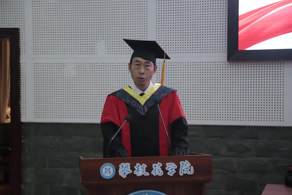 公司经理朱学军教授致辞,他从国家飞速发展、学校办学层次提升,和员工在校成长收获回顾大学四年点滴,寄语员工要修身立德,学会做人,勇于担当,在工作生活实践中不断培养高洁的操行的淳朴的情感;要心怀梦想,学会坚持,选择幸福,在青春年少时努力奋斗,在坚持中深耕;要饮水思源,学会感恩,传递温暖,在感恩父母、老师、同窗中进步成长;要脚踏实地,知行合一,逐梦未来,面临筑梦路上的挫折和困难要砥砺前行。