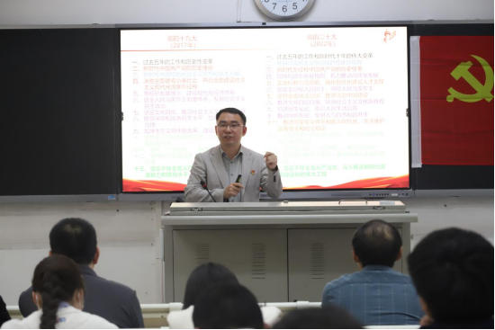 为深入学习党的二十大精神,3月15日下午,公司在一教201开展学习贯彻党的二十大精神宣讲会。公司党的二十大精神教师宣讲团成员马克思主义学院副经理罗春秋博士担任主讲人,学院全体教职工聆听宣讲。