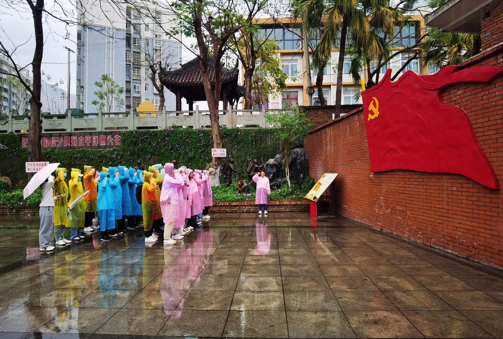 在初心园、《红火年华》拍摄基地,通过浮雕、微场景、图片等形式再现了攀枝花三线建设时热火朝天的生产生活场景,从“席棚子”到“干打垒”,“红砖墙”再到“水泥墙”的变迁,从背上铁水桶,重走“背水小道”的沉重脚步,生化学院师生党员亲身感受到三线建设者的艰辛,对“艰苦创业、勇于创新、团结协作、无私奉献”的三线精神有了更深刻的感悟。在雨中,全体党员重温了入党誓词,纷纷表示,在今后学习工作中,要传承弘扬三线建设精神,自觉践行“自律攀大人立德树人过程一流”的人才培养要求,为学校建设贡献自身力量。